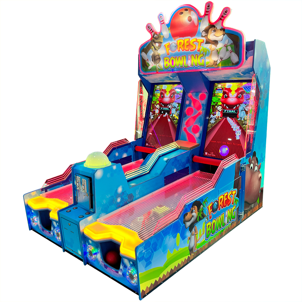 After choosing a single or double mode, start the game. Roll the ball to the front of the machine and score bowling. The extended double fairway is equipped with dazzling LED lighting effect, playing more authentic and more stimulating.